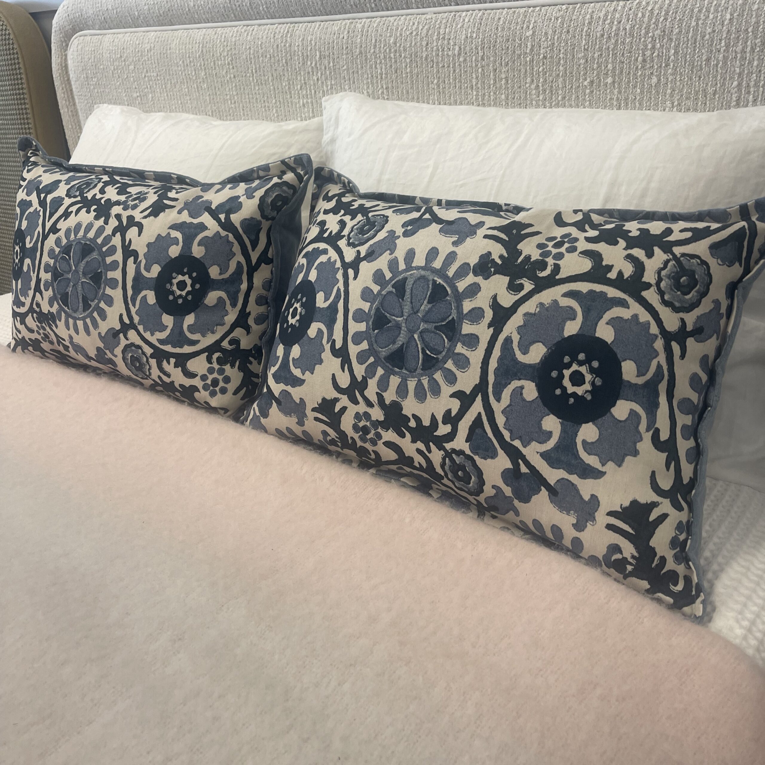 FABRIC:  Navy Cezani linen with blue velvet on back