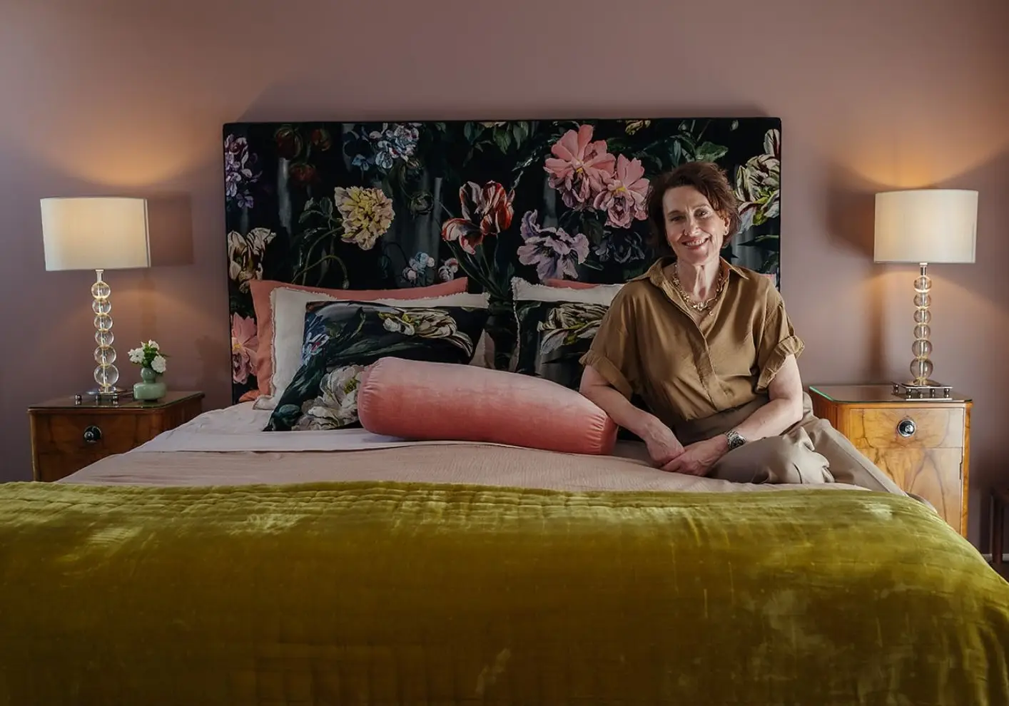 To transform your sleep space into a coastal escape with a touch of European flair, we love sunset shades in warm hues of pink, orange and lilac to create a calming atmosphere — as seen styled on our Amanti bed.