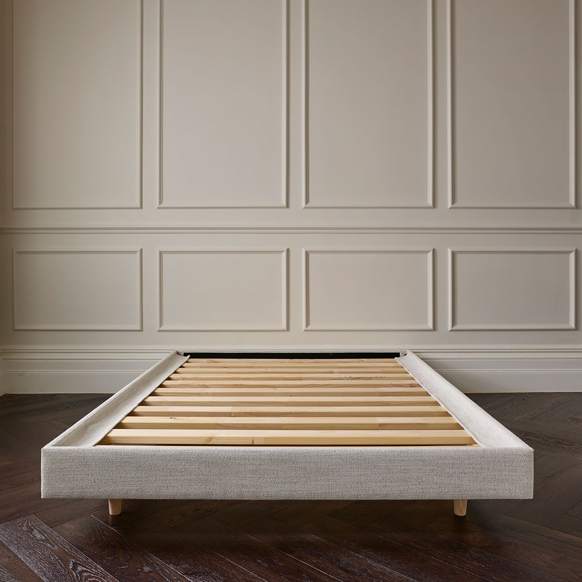 How about a fully upholstered stand alone bed frame inclusive of a timber slat?
