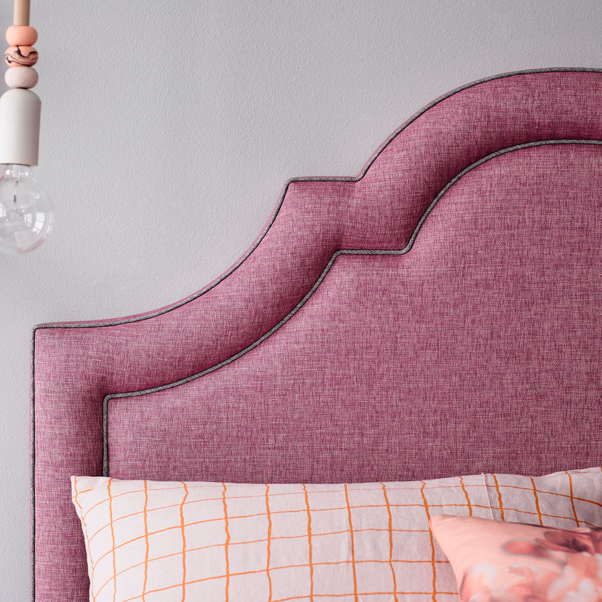 Combining regal sophistication with a contemporary touch, the dramatic curves of the much-loved Empire bed head have been given a fresh finish this season. Choose between a piped bordered edge to emphasise its striking curves or alternatively streamline them with a minimalist finish. Putting a quirky, modern twist on the regal theme and traditional design elements our Empire bed head will have you sleeping like a Queen, or at least a Duchess, every night.