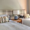 Louis with its curved corners and piped detail allows the fabric to sing. Choose a special tartan with a leather pipe or opt for a plain with a contrast edge. Opt for an oversized bedhead to allow for two King single beds as featured.