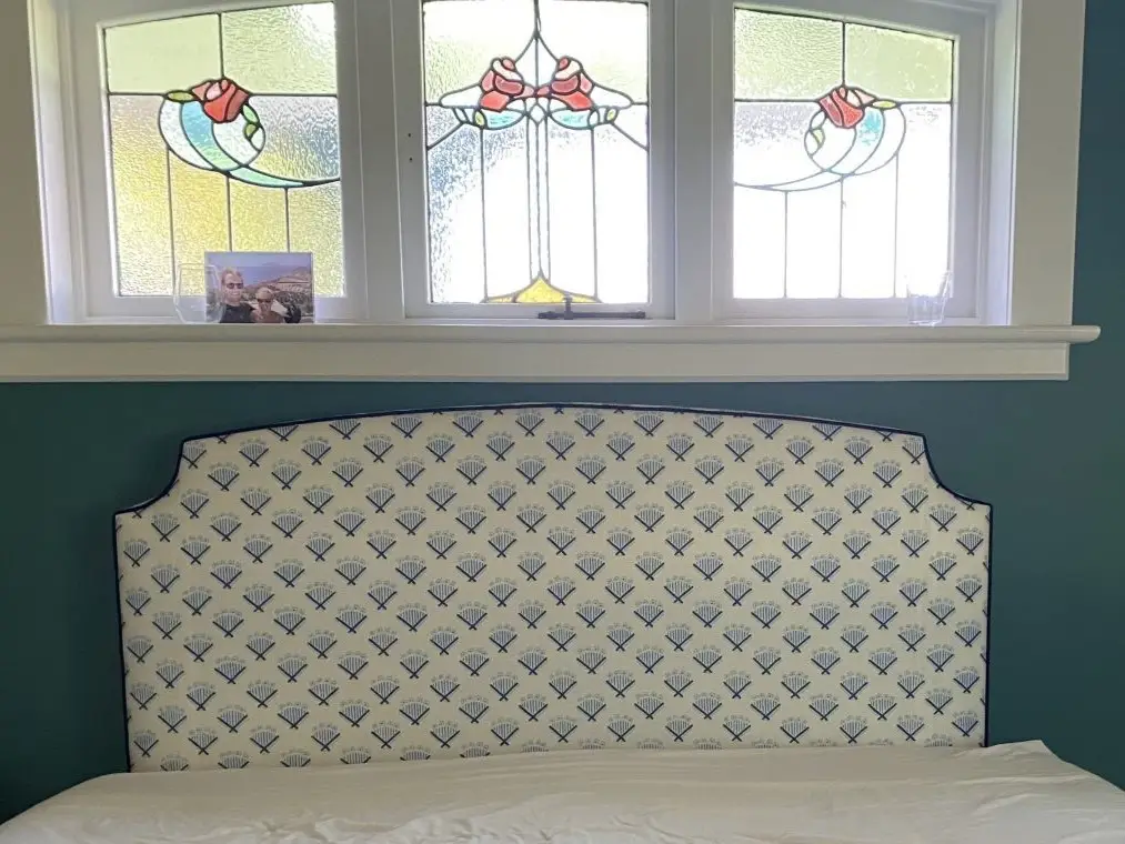 Queen Luella Bedhead in Anna Spiro Bouquet Bay linen