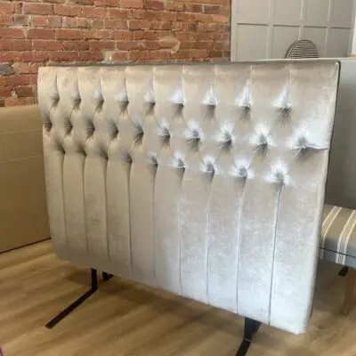 Queen Albertine bedhead in Ellison Seamist Velvet